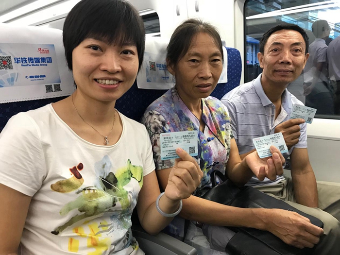 香港西九龍站, 80多歲家住深圳的黃奶奶送老伴和兒子去香港會見老朋友,“他們很多小時候的同學(xué)在香港,多年沒見了,今天通了高鐵,十幾分鐘就過來了。”