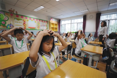 9月19日,朝陽(yáng)區(qū)實(shí)驗(yàn)小學(xué)(三里屯幸福校區(qū)北區(qū)),學(xué)生們正在做新眼保健操。 新京報(bào)記者 王飛 攝