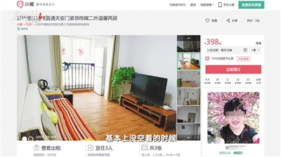 位于北京東五環外的燕保雙橋家園公租房項目于2015年投放。該小區5號樓2單元508室的承租人遲女士,將所承租的60平方米的小兩居改成日租房,至今已經營兩年了。9月19日,記者登錄小豬、途家、榛果3個民宿預訂網站,記錄顯示,遲女士經營的民宿近期價格為每晚398至498元不等,早在2017年1月就有了住戶評價。