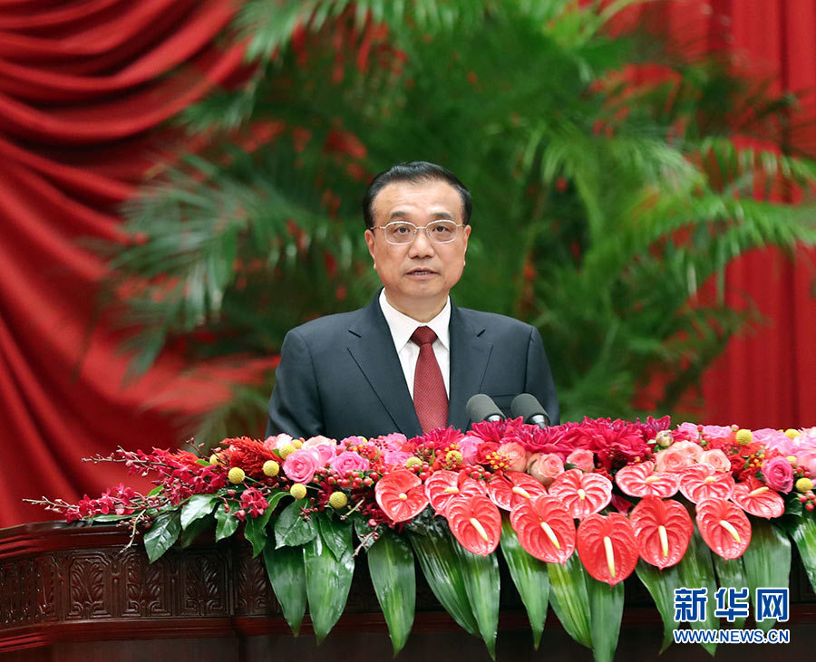 9月30日晚,國(guó)務(wù)院在北京人民大會(huì)堂舉行國(guó)慶招待會(huì),熱烈慶祝中華人民共和國(guó)成立六十九周年。國(guó)務(wù)院總理李克強(qiáng)致辭。 新華社記者 劉衛(wèi)兵 攝