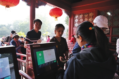 記者從香山公園了解到,國慶期間香山公園實施游客網上預約游覽制度,每日最大售票量7萬張。記者走訪注意到,香山公園門區已全部更換售驗票系統,東門、北門設置了12臺綜合驗票機,可同時檢驗電子二維碼、紙票二維碼等,游客掃碼、屏幕上出現確認界面后即可入園,耗時僅需1-2秒。(記者周依)