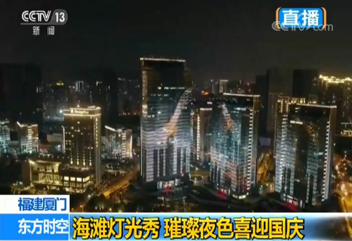 廈門(mén)夜景最絢麗的地方,這里的二十幾棟大樓,每天晚上都會(huì)變身燈光秀的舞臺(tái)。不過(guò)國(guó)慶期間和平日還是有所不同,為慶祝國(guó)慶進(jìn)行了特別的設(shè)計(jì)和修改。