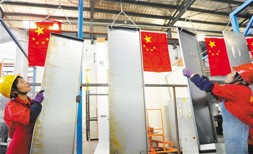 圖② 9月30日,江西省新余市渝水區(qū)珠珊鎮(zhèn)板橋工業(yè)園,江西劍安消防設(shè)備有限公司的生產(chǎn)車(chē)間里,員工忙生產(chǎn),為國(guó)慶獻(xiàn)禮。 鐘婷 攝