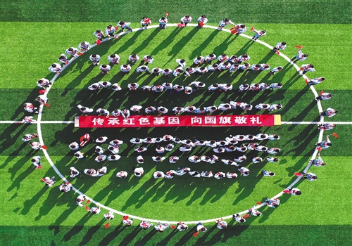 圖⑦ 9月29日,山東省滕州市實(shí)驗(yàn)小學(xué)開(kāi)展“傳承紅色基因,向國(guó)旗敬禮”主題活動(dòng),慶祝新中國(guó)成立69周年。 宋海存攝