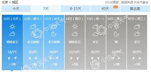 未來幾天北京仍在回暖當中,明后天都是多云轉晴的天氣,最高氣溫20℃,最低氣溫8℃。到了周日,最高氣溫將回升至22℃,最低氣溫也回到10℃上下。