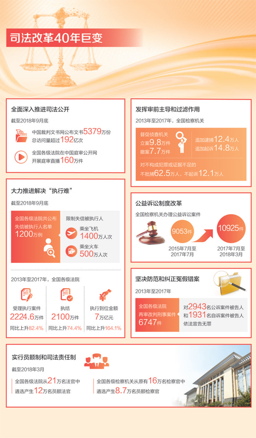 原標(biāo)題? 法安天下 守護(hù)公平正義(大數(shù)據(jù)觀察·壯闊東方潮 奮進(jìn)新時代——慶祝改革開放40年·數(shù)說)