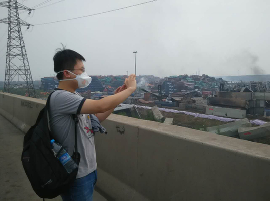 圖為2015年8月,李鯤在天津港“8·12”特大火災爆炸事故現場附近拍照記錄現場情況。