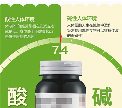 新京報記者查閱資料發現,“酸堿體質理論”基本觀點認為,人體體液的pH值處于7.35~7.45 的弱堿狀態是最健康的,但很多人由于生活習慣及環境的影響成“酸性體質”,會造成多種疾病甚至癌癥。