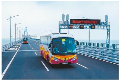 據交通運輸部新聞發言人吳春耕介紹,在通行車輛方面,主要呈現三個特點:一是大橋通行車輛以客車為主,客車占比97.58%,貨車占比2.42%。其中,穿梭巴士和小客車占比較大,分別達44.97%和30.54%。二是不停車收費比例高。電子不停車收費占收費車輛的80.22%。三是周末高峰特征明顯。每日通行高峰主要集中在上午10時至12時和下午17時至19時。