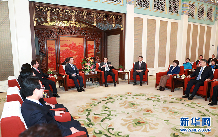 11月27日,國務(wù)院總理李克強(qiáng)在北京中南海紫光閣會見出席第二屆中韓省長知事會議的雙方代表。新華社記者 龐興雷 攝