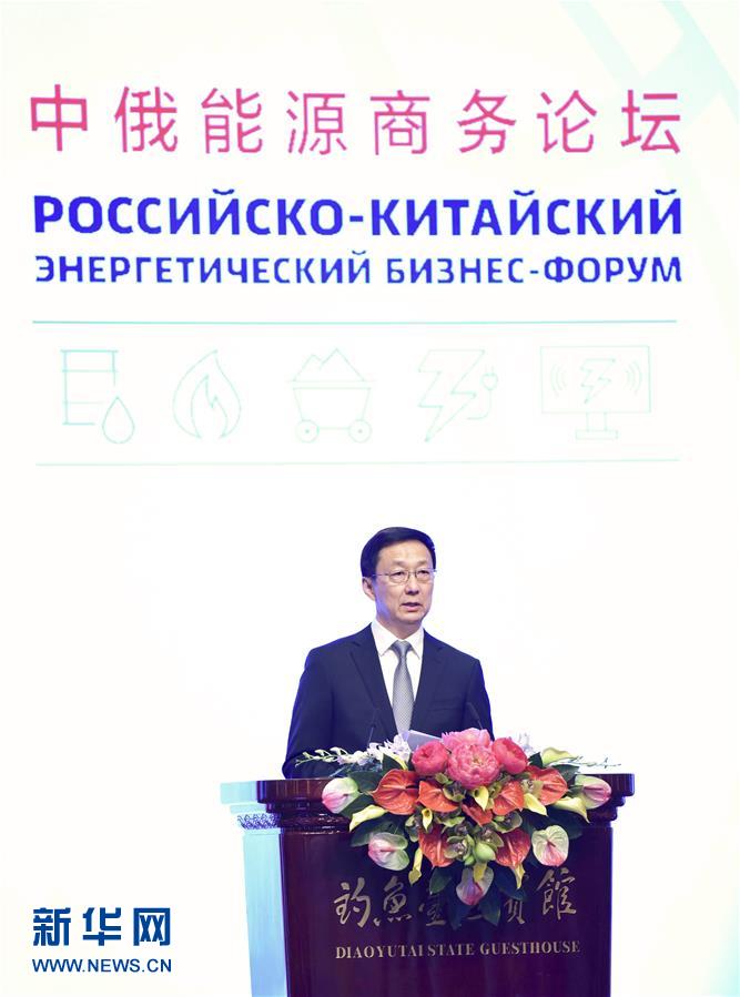 11月29日,中俄能源商務(wù)論壇在北京釣魚(yú)臺(tái)國(guó)賓館開(kāi)幕。中共中央政治局常委、國(guó)務(wù)院副總理韓正出席開(kāi)幕式,宣讀習(xí)近平主席賀信并致辭。 新華社記者 殷博古 攝