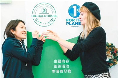 現在,這對小情侶在北京南鑼鼓巷開了一家名叫THE BULK HOUSE(零浪費無包裝商店)的小店,繼續倡導“零浪費”生活,用不銹鋼吸管代替塑料吸管,還把用過的米袋子舊物改造成時尚手包、背包,把舊布料做的衣服和枕套,用閑置紙盒郵寄快遞,受到了顧客歡迎。