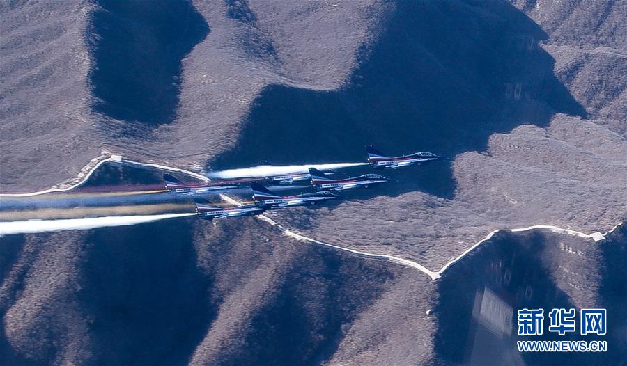12月6日,中國空軍八一飛行表演隊6架殲-10飛越長城。 新華社發(陶佳莉 攝)