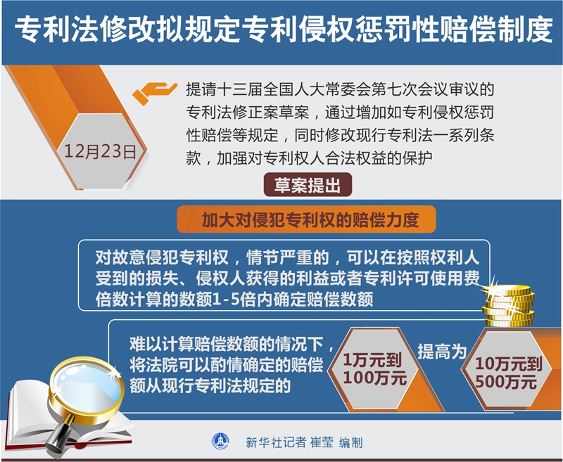 專利法修改擬規定專利侵權懲罰性賠償制度 新華社記者 崔瑩 編制
