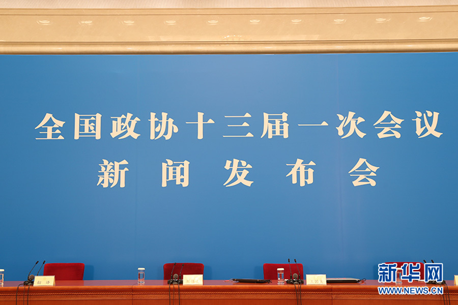 全國政協(xié)十三屆一次會議新聞發(fā)布會3月2日16:30在人民大會堂一層新聞發(fā)布廳召開,大會新聞發(fā)言人王國慶向中外媒體介紹本次大會有關(guān)情況并回答記者提問。圖為新聞發(fā)布會開始前。新華網(wǎng)/中國政府網(wǎng) 陳杰攝