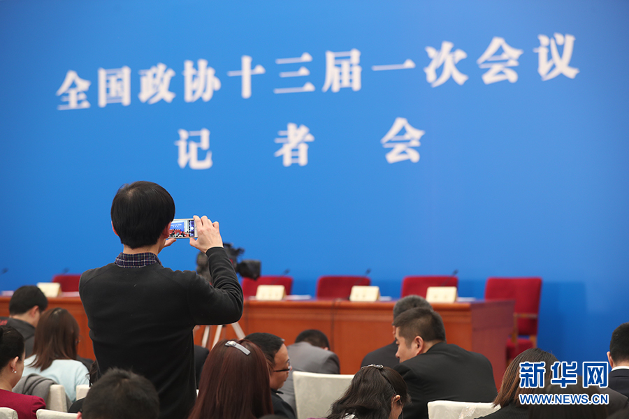 全國(guó)政協(xié)十三屆一次會(huì)議3月8日15:00在人民大會(huì)堂新聞發(fā)布廳舉行第二場(chǎng)記者會(huì),邀請(qǐng)中央財(cái)經(jīng)領(lǐng)導(dǎo)小組辦公室副主任楊偉民,中國(guó)進(jìn)出口銀行董事長(zhǎng)、黨委書(shū)記胡曉煉,農(nóng)業(yè)部原副部長(zhǎng)陳曉華,全國(guó)工商聯(lián)副主席、清華大學(xué)經(jīng)濟(jì)管理學(xué)院院長(zhǎng)錢(qián)穎一,中國(guó)中化集團(tuán)有限公司黨組書(shū)記、董事長(zhǎng)寧高寧就推動(dòng)經(jīng)濟(jì)高質(zhì)量發(fā)展回答記者提問(wèn)。圖為記者在現(xiàn)場(chǎng)拍攝。新華網(wǎng)/中國(guó)政府網(wǎng) 翟子赫 攝?