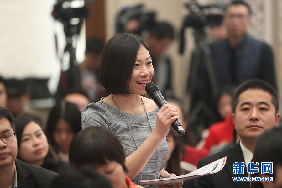 全國政協十三屆一次會議3月8日15:00在人民大會堂新聞發布廳舉行第二場記者會,邀請中央財經領導小組辦公室副主任楊偉民,中國進出口銀行董事長、黨委書記胡曉煉,農業部原副部長陳曉華,全國工商聯副主席、清華大學經濟管理學院院長錢穎一,中國中化集團有限公司黨組書記、董事長寧高寧就推動經濟高質量發展回答記者提問。圖為中國農村雜志社記者提問。新華網/中國政府網 翟子赫攝