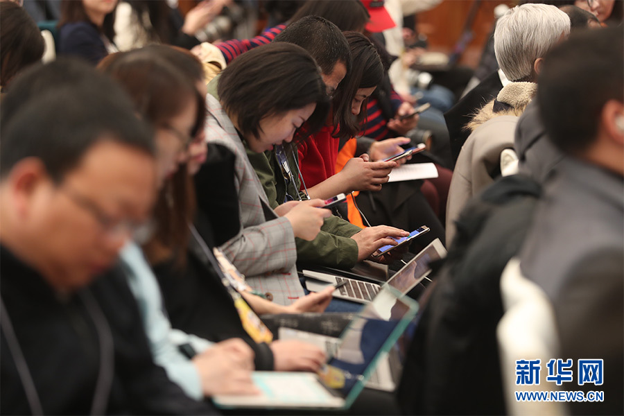 全國政協十三屆一次會議3月8日15:00在人民大會堂新聞發布廳舉行第二場記者會,邀請中央財經領導小組辦公室副主任楊偉民,中國進出口銀行董事長、黨委書記胡曉煉,農業部原副部長陳曉華,全國工商聯副主席、清華大學經濟管理學院院長錢穎一,中國中化集團有限公司黨組書記、董事長寧高寧就推動經濟高質量發展回答記者提問。圖為媒體記者在現場。新華網/中國政府網?翟子赫 攝