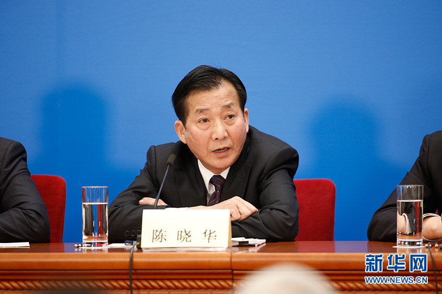 全國政協(xié)十三屆一次會議3月8日15:00在人民大會堂新聞發(fā)布廳舉行第二場記者會,邀請中央財經(jīng)領導小組辦公室副主任楊偉民,中國進出口銀行董事長、黨委書記胡曉煉,農(nóng)業(yè)部原副部長陳曉華,全國工商聯(lián)副主席、清華大學經(jīng)濟管理學院院長錢穎一,中國中化集團有限公司黨組書記、董事長寧高寧就推動經(jīng)濟高質(zhì)量發(fā)展回答記者提問。圖為農(nóng)業(yè)部原副部長陳曉華。新華網(wǎng)/中國政府網(wǎng) 陳杰 攝