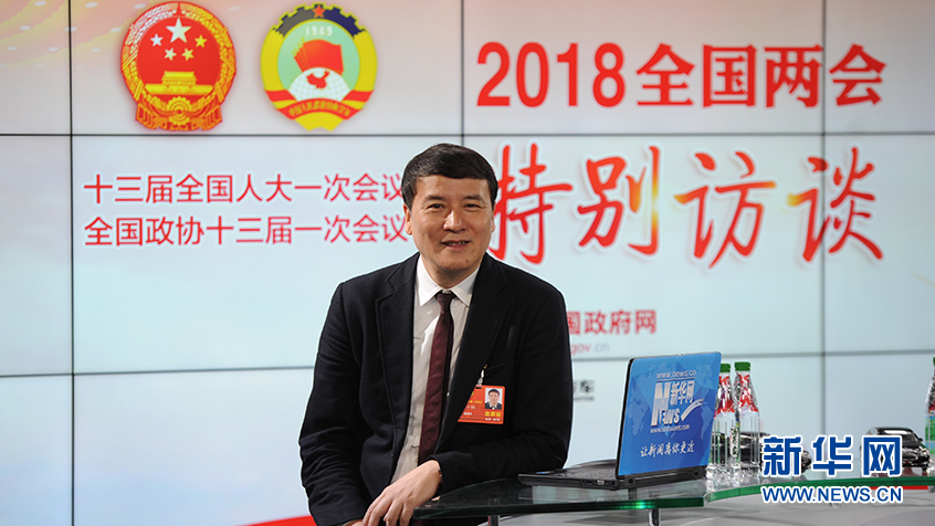 圖為全國(guó)政協(xié)委員、中國(guó)音樂家協(xié)會(huì)主席葉小鋼做客新華網(wǎng)2018全國(guó)兩會(huì)特別訪談。新華網(wǎng)郭小天攝