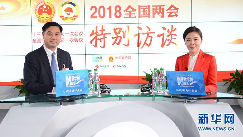 圖為全國人大代表、宜昌市市長張家勝做客新華網2018全國兩會特別訪談。新華網 楊濛攝