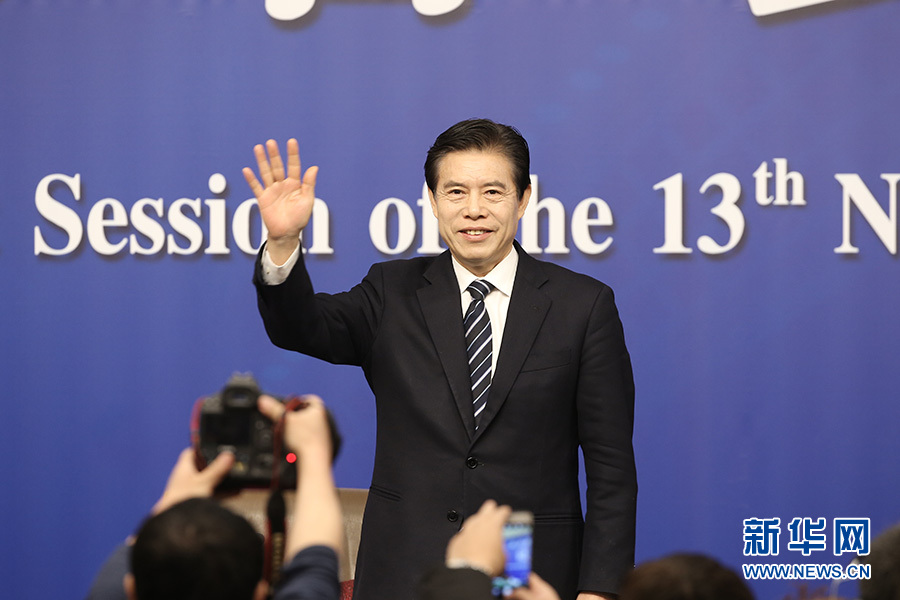 十三屆全國(guó)人大一次會(huì)議新聞中心3月11日10時(shí)在梅地亞中心多功能廳舉行記者會(huì),邀請(qǐng)商務(wù)部部長(zhǎng)鐘山、副部長(zhǎng)兼國(guó)際貿(mào)易談判副代表王受文、副部長(zhǎng)錢克明就“推動(dòng)形成全面開放新格局 推動(dòng)商務(wù)事業(yè)高質(zhì)量發(fā)展”相關(guān)問題回答中外記者提問。圖為商務(wù)部部長(zhǎng)鐘山。新華網(wǎng)/中國(guó)政府網(wǎng)?陳杰?攝?