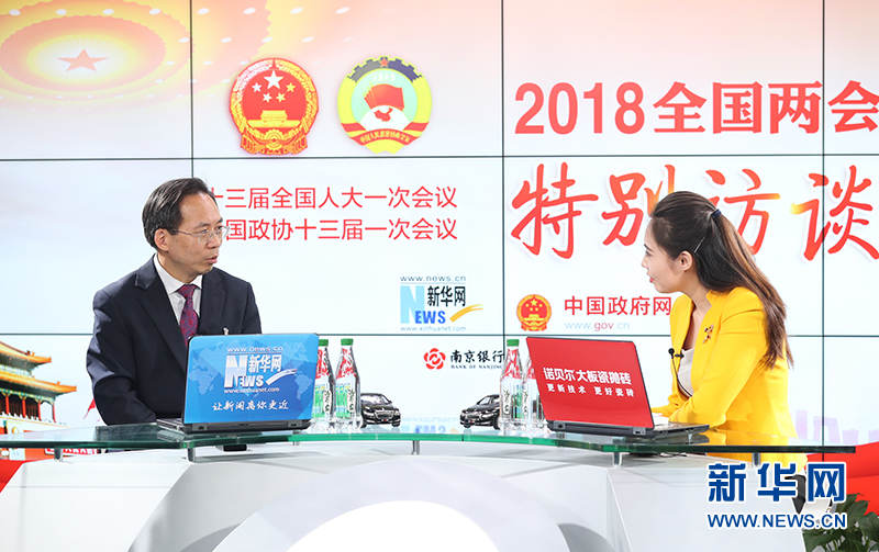 圖為全國政協(xié)委員、中國財政科學研究院院長劉尚希(左)做客新華網2018全國兩會特別訪談。新華網 郭小天攝