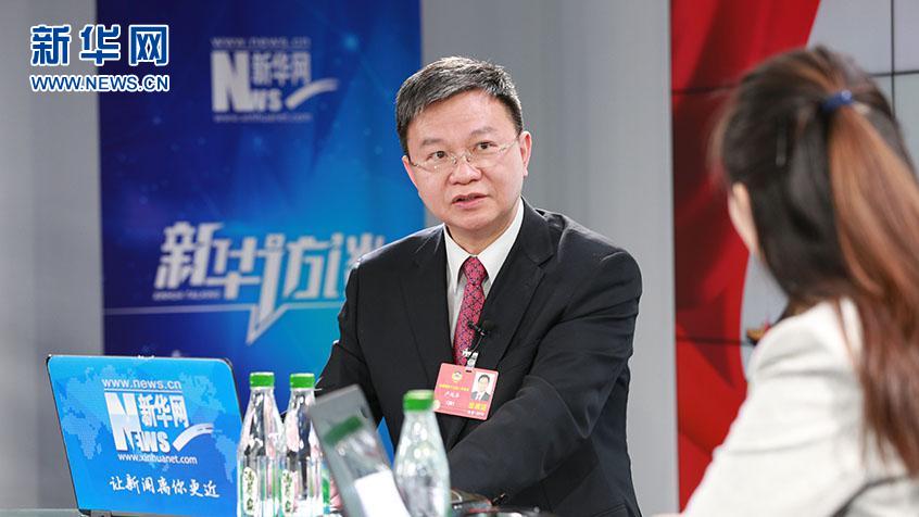 圖為全國政協委員、中國科學院院士、蘭州大學校長嚴純華做客新華網2018全國兩會特別訪談。新華網楊锘攝