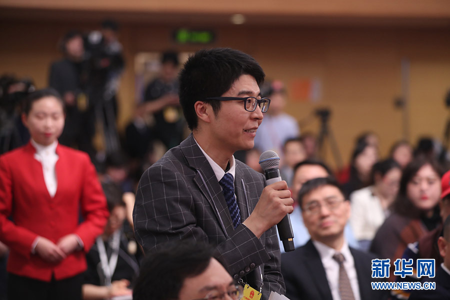 3月12日,十三屆全國人大一次會議新聞中心在梅地亞中心多功能廳舉行記者會,邀請十二屆全國人大內司委副主任委員王勝明、財經委副主任委員烏日圖、教科文衛委副主任委員吳恒、環資委委員呂彩霞,全國人大常委會法工委副主任王超英、副主任許安標就“人大立法工作”相關問題回答中外記者提問。圖為成都商報記者提問。新華網/中國政府網 翟子赫 攝