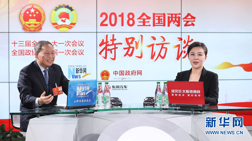 圖為15日,全國人大代表、重慶小康工業(yè)集團股份有限公司董事長張興海做客新華網(wǎng)2018全國兩會特別訪談。新華網(wǎng) 郭小天攝