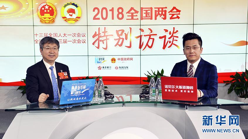 圖為全國人大代表、奇瑞汽車股份有限公司黨委書記、董事長尹同躍做客新華網2018全國兩會特別訪談。新華網 李相博 攝