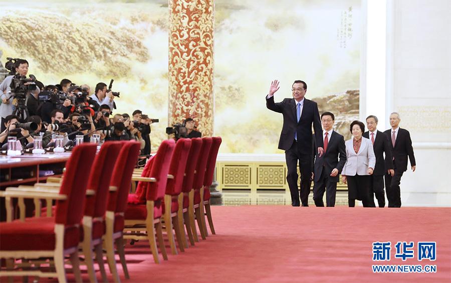 李克強總理向中外記者介紹了各位副總理,并對大家表示感謝,歡迎大家提問。