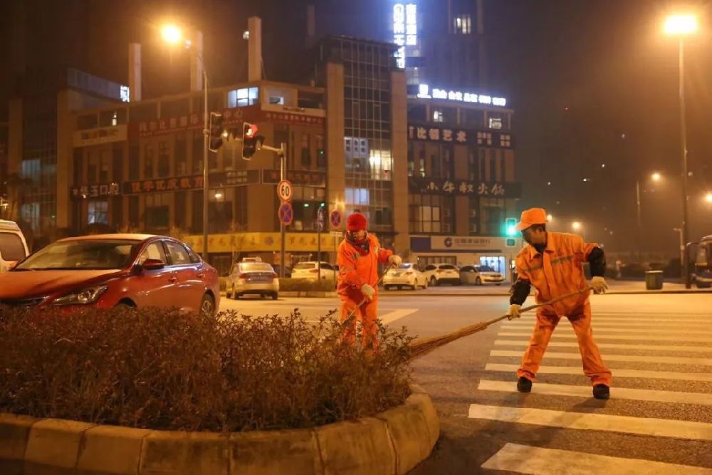 成都,環(huán)衛(wèi)工人開始了一天的工作。新華網發(fā)(曹鵬 攝)