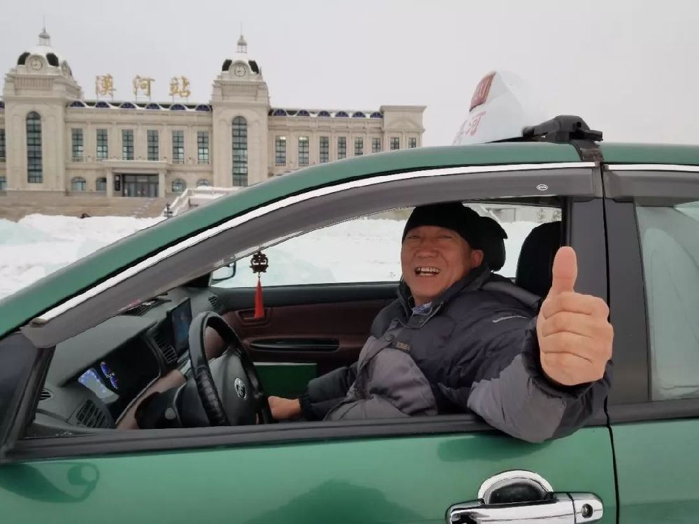 漠河,出租車司機一大早就出車了。新華網發(fā)(郝大慶 攝)