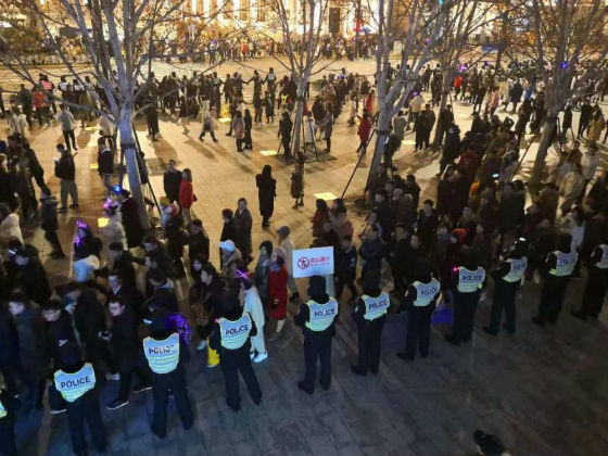 下午15時(shí)許,黃浦公安分局民警和增援安保工作的學(xué)警和武警共8600余名安保力量就已全部到崗,按照事先部署的安保方案嚴(yán)陣以待。此時(shí),南京東路往外灘的游客開(kāi)始聚集,警方在南京東路四川中路口、南京東路江西中路口實(shí)施交通管制,禁止機(jī)動(dòng)車輛通行。民警在現(xiàn)場(chǎng)放置了繞行提示版,提醒車輛繞行河南路,非機(jī)動(dòng)車輛繞行山東中路或山西中路。南京東路外灘、南京東路河南中路路口也沿用了保護(hù)行人過(guò)馬路安全的“人墻”——紅燈時(shí)攔住路口、綠燈時(shí)散開(kāi)在兩邊攔截車流護(hù)送人群過(guò)街的“開(kāi)關(guān)式”過(guò)馬路措施。