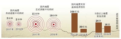 記者從會上獲悉,2018年,我國地震監測預報預警能力明顯提高。會議工作報告指出,去年,我國地震監測覆蓋率進一步提高,在川西、西藏新建測震臺110個。地震速報時間進一步縮短,國內地震自動速報平均用時從2017年的3分鐘縮短到2分鐘,正式測報平均用時從2017年的15分鐘縮短到10分鐘。