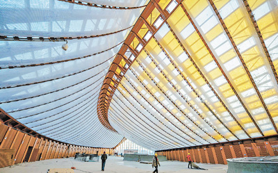 “館頂的琉璃瓦是仿真的,實際上是鋁合金型材。既可以模擬傳統建筑的質地,也能節約成本,這是現代科技元素在北京世園會的獨特運用。”黎靚對記者說。中國館的底層展廳還采用了覆土被動房技術,利用地道風,降低館內空調使用能耗。