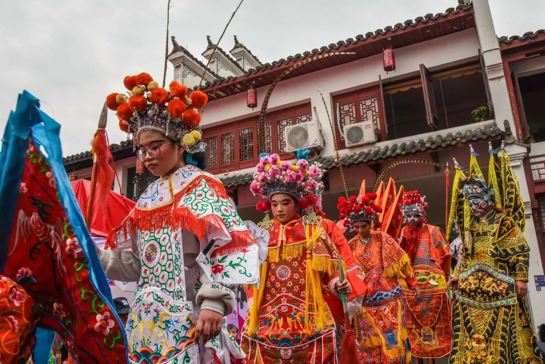 2019-01-25,浙江金華。在新春廟會的表演上,新老交替的高蹺表演隊員預示著我們八婺非遺文化后繼有人了。作者:簡約星空