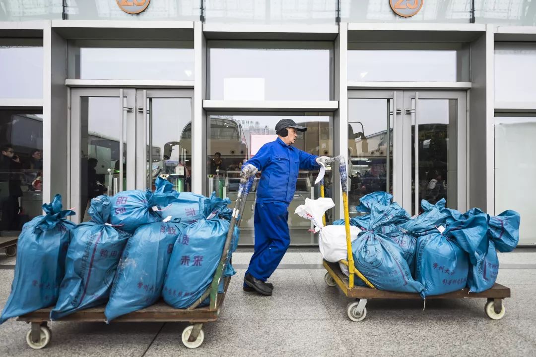 2019-02-01,江蘇省常州市。春運(yùn)大軍中,客運(yùn)站的貨物托運(yùn)工正在托運(yùn)貨物裝車。只見他驅(qū)動(dòng)兩個(gè)小拖車同時(shí)行動(dòng),一下子運(yùn)走了十幾個(gè)包裹。作者:全無敵