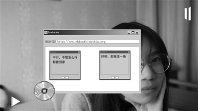 打開《自我性賴》,通過開始界面選擇開始新游戲,可選擇兩個劇本,分別是“過早發(fā)生性行為”和“性病”,在過早發(fā)生性行為這個劇本中,一男一女兩個高中生坐在沙發(fā)上打游戲,沒注意時間已經(jīng)晚了,男生便提出希望女生在家過夜,玩家隨后需要為女生做出選擇,要么選擇“不行,不管怎么樣都要回家”,要么選擇“好吧,那就住一晚”……游戲會引導(dǎo)學(xué)生進(jìn)行正確的選擇。
