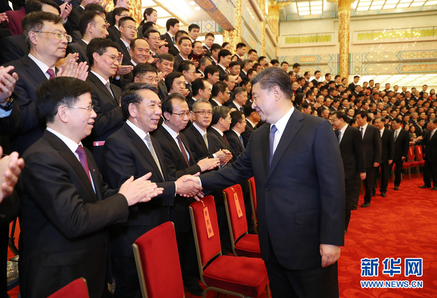 2月20日,黨和國家領導人習近平、李克強、栗戰書、汪洋、王滬寧、趙樂際、韓正等在北京人民大會堂會見探月工程嫦娥四號任務參研參試人員代表。 新華社記者鞠鵬攝