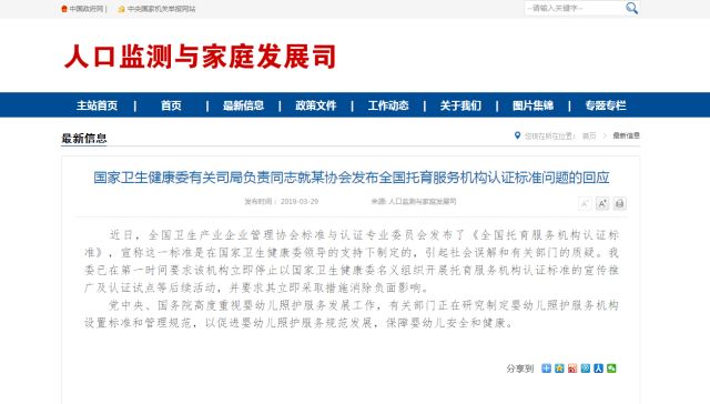 近日,全國衛(wèi)生產(chǎn)業(yè)企業(yè)管理協(xié)會標(biāo)準(zhǔn)與認(rèn)證專業(yè)委員會發(fā)布了《全國托育服務(wù)機(jī)構(gòu)認(rèn)證標(biāo)準(zhǔn)》,宣稱這一標(biāo)準(zhǔn)是在國家衛(wèi)生健康委領(lǐng)導(dǎo)的支持下制定的,引起社會誤解和有關(guān)部門的質(zhì)疑。我委已在第一時間要求該機(jī)構(gòu)立即停止以國家衛(wèi)生健康委名義組織開展托育服務(wù)機(jī)構(gòu)認(rèn)證標(biāo)準(zhǔn)的宣傳推廣及認(rèn)證試點(diǎn)等后續(xù)活動,并要求其立即采取措施消除負(fù)面影響。