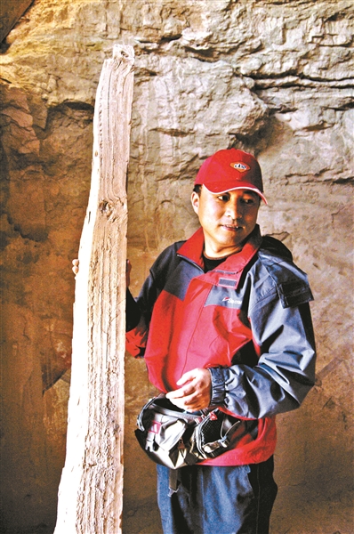 2005年王旭東在新疆樓蘭壁畫墓做現場搶救性支頂