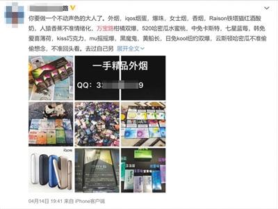 網上賣煙廣告,留有QQ號。 本版圖片均為微博截屏圖
