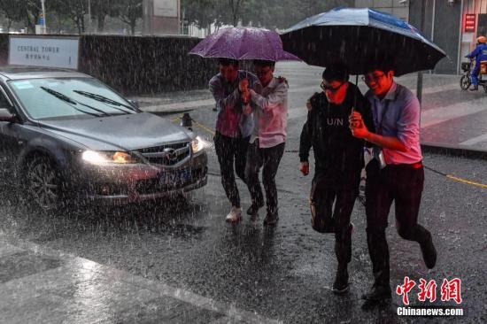 資料圖:廣州民眾冒雨出行。中新社記者 陳驥旻 攝