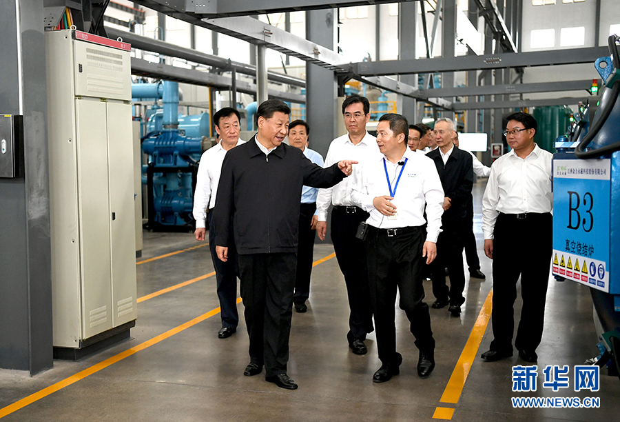 5月20日至22日,中共中央總書記、國家主席、中央軍委主席習近平在江西考察,主持召開推動中部地區崛起工作座談會并發表重要講話。這是習近平在江西金力永磁科技股份有限公司考察,了解企業生產經營情況。 新華社記者 謝環馳 攝