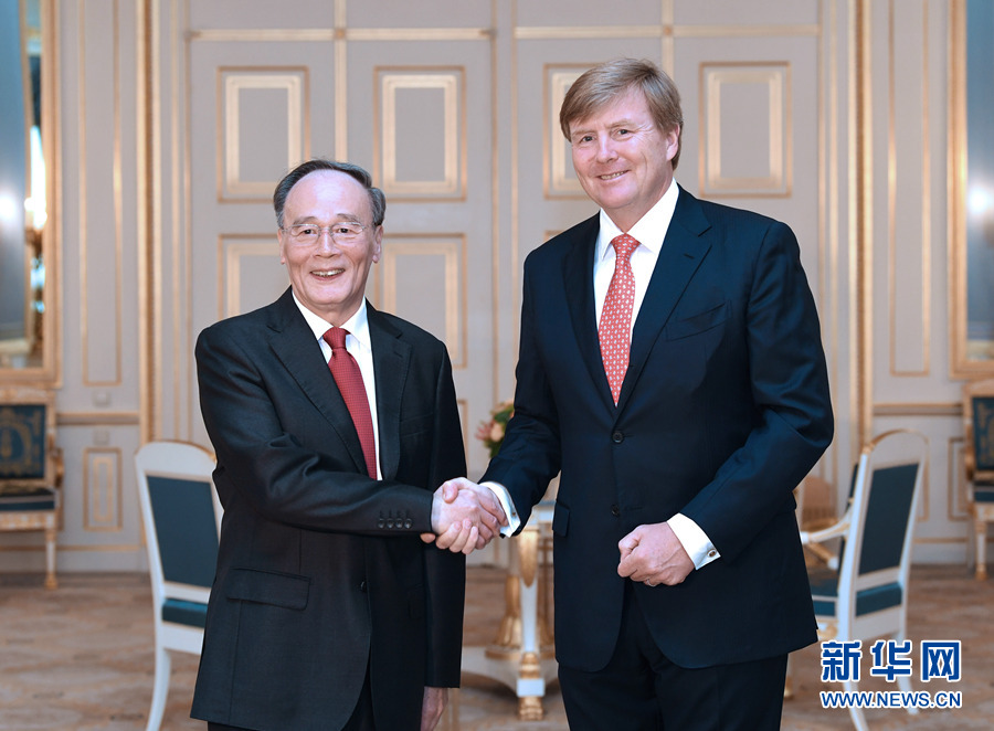應(yīng)荷蘭首相呂特邀請,國家副主席王岐山當(dāng)?shù)貢r(shí)間5月28日至30日訪問荷蘭,分別會見威廉-亞歷山大國王和呂特首相。這是5月29日,王岐山在海牙會見荷蘭國王威廉-亞歷山大。 新華社記者 饒愛民 攝