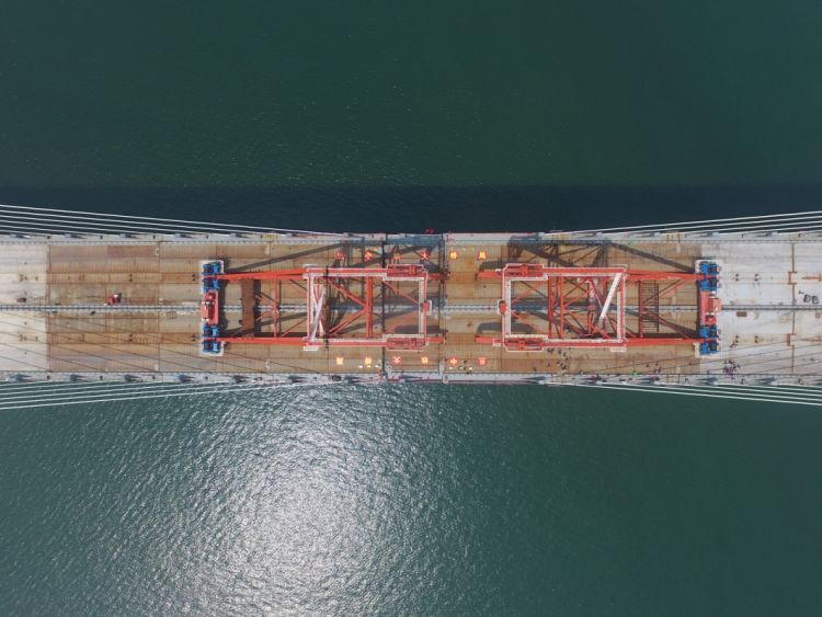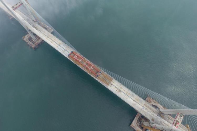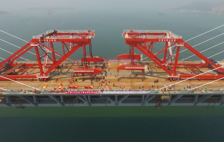 6月5日,福平鐵路平潭海峽公鐵兩用大橋元洪航道橋主橋合龍。(新華社記者林善傳 攝)