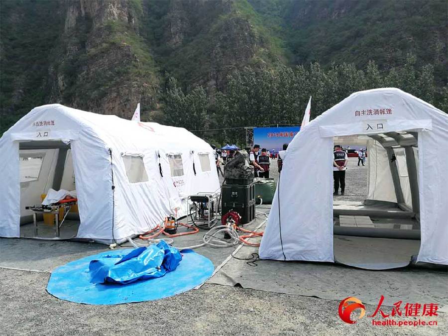 演練現場共調集緊急醫學救援、突發急性傳染病防控、突發中毒事件處置3類6支國家衛生應急隊伍,動用制式衛生應急車輛150余臺、模塊化醫療救治帳篷40余頂、救援直升機1架,共有京津冀22家醫療衛生單位的330余人參加了演練。