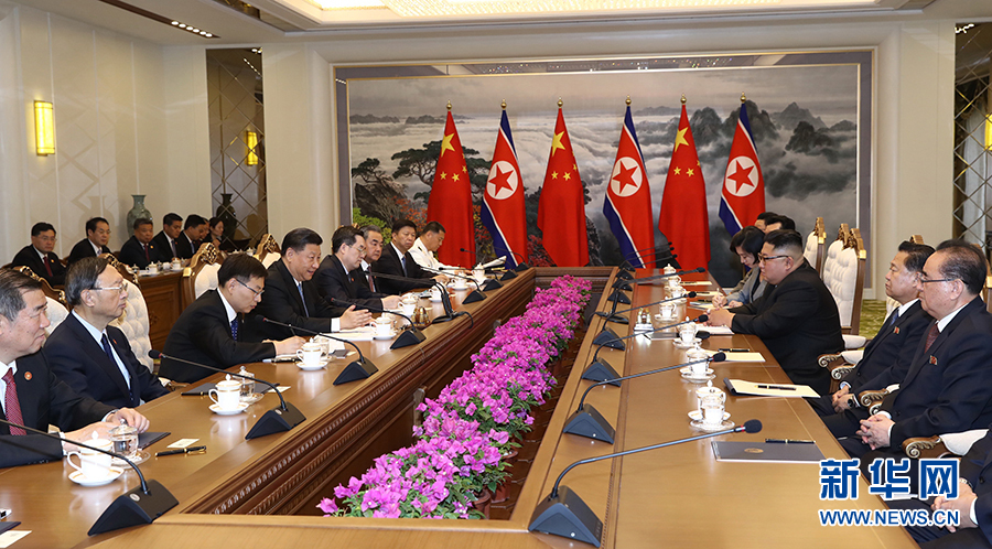 習(xí)近平指出,去年以來,我和委員長同志4次會晤,書寫了中朝關(guān)系新篇章,并結(jié)下了深厚友誼。感謝金正恩委員長同志為我這次訪問舉行的隆重而熱烈的歡迎儀式,我今天從下飛機到抵達住處,所到之處無不感受到中朝一家親的濃厚氛圍。今年是中朝建交70周年,在兩黨兩國關(guān)系發(fā)展史上具有承前啟后、繼往開來的重要意義,我又同金正恩委員長在平壤會面。我這次是為鞏固傳承中朝友誼而來,為推動朝鮮半島問題政治解決進程而來。相信以這次訪問為契機,我們一定會共同擘畫中朝關(guān)系美好未來,共同開啟中朝友誼嶄新篇章。